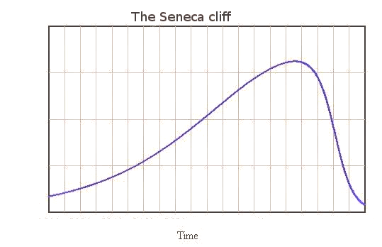 Admiro profundament Ugo Bardi. Va tenir una intuïció feliç llegint «Cartes a Lucili» de Sèneca i va inventar un concepte acompanyat d’una imatge que gairebé no necessita explicació però que té al darrera un bon pòsit estadístic. El concepte és l’Efecte Sèneca i la imatge el penyasegat de Sèneca.